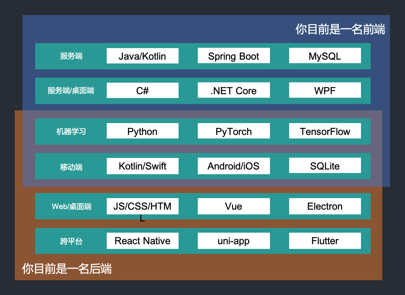 因此,想成为一名全栈,也必然需要做一些取舍,需要更加注重技术的广度,而不能陷进技术的深度中无法自拔,毕竟人的精力是有限的。