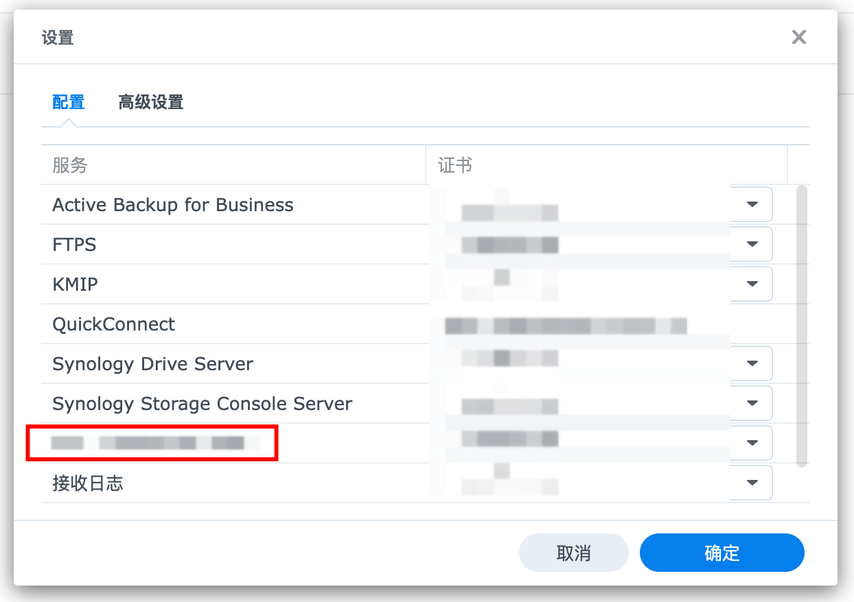 删除群晖 Synology 证书设置中自定义的服务
