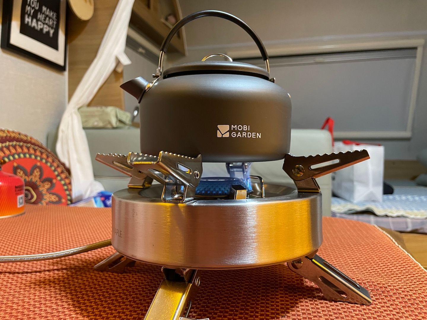 房车里设施齐全,还带了灶台,不过我们自己也带了一个炉子,煮了一顿泡面火锅,还煮了茶,非常有意思。这个炉子和茶壶买来第一次用,特别喜欢,而且炉子是折叠的,特方便。以后的露营或者自驾游都会带上,非常实用。希望能用很多年。